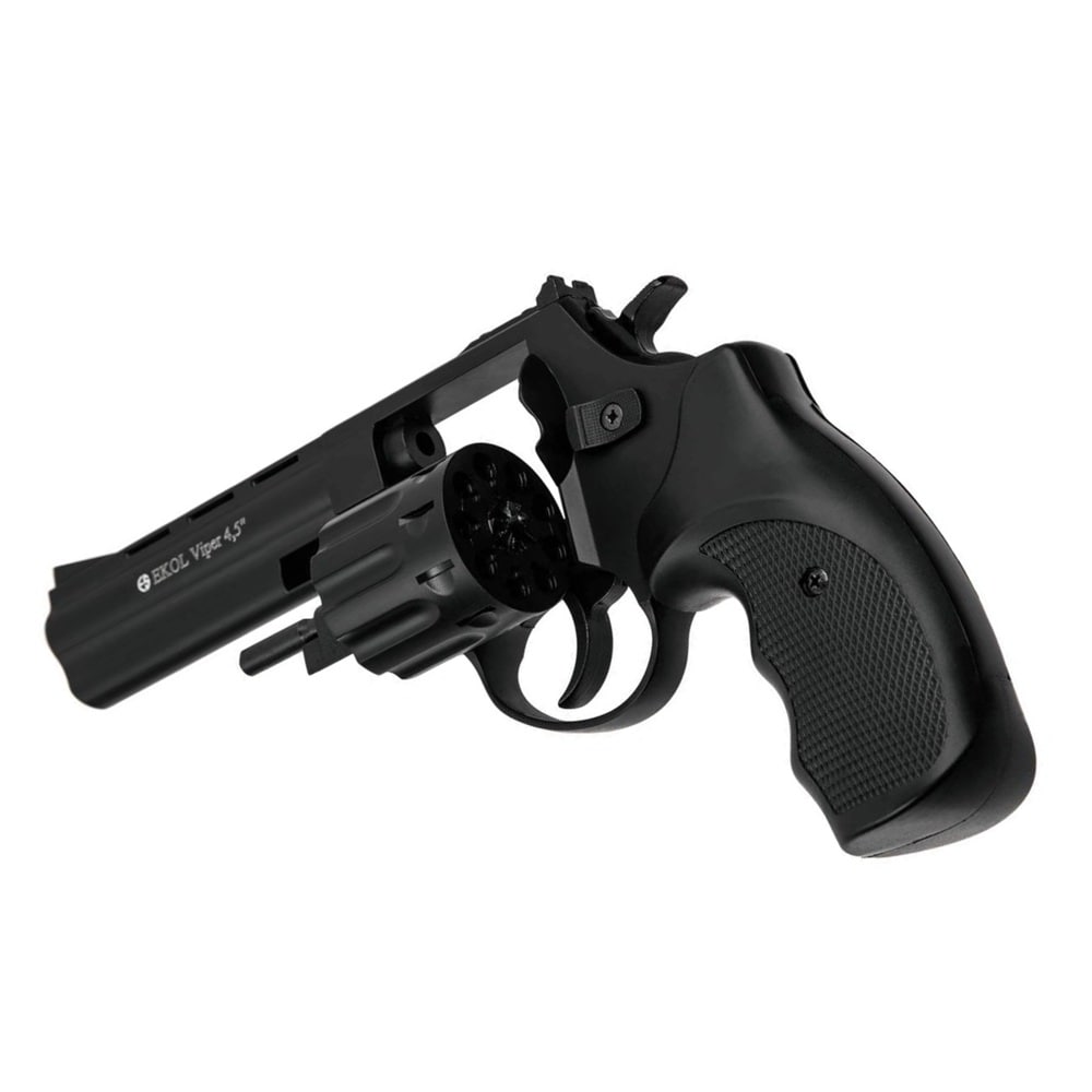 Ekol Viper 4.5 black – револьвер Флобера калібром 4 мм від турецької компанії Voltran Silah Sana. Рамка Екол Вайпер 4.5, УСМ з металевого сплаву ЦАМ; гладкий ствол, посилений барабан на 9 набоїв, прицільна планка - сталеві; накладки на рукоятку - чорний пластик. Стріляє патронами Флобера, середня швидкість пострілу - 180 м/с. Ударно-спусковий механізм подвійної дії. Прицільні пристосування - регульований цілик і фіксована мушка. Купити револьвер Флобера Voltran Ekol Viper 4.5 потужністю до 7,5 Джоулів в Україні можна без дозволу з 18 років.