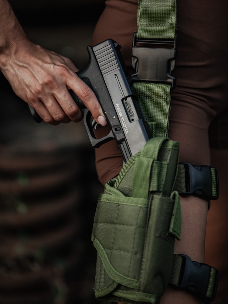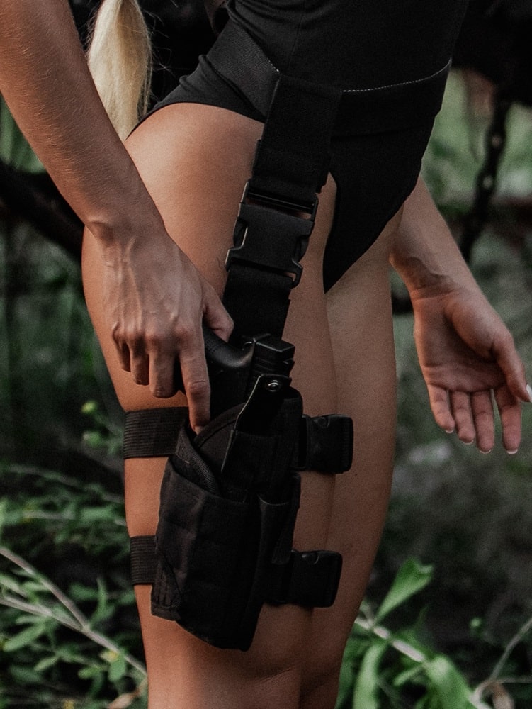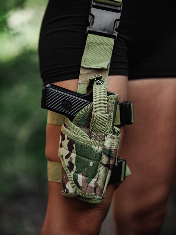 Тактична, або стегнова кобура, розроблена для фіксації на стегні, забезпечуючи зручність при сидінні та ефективне зручне носіння. З цією кобурою легко підтримувати доступ до пістолета, зберігаючи тактичну готовність. Її дизайн забезпечує відмінну комбінацію маневреності та зручності. Поширена в елітних армійських підрозділах.