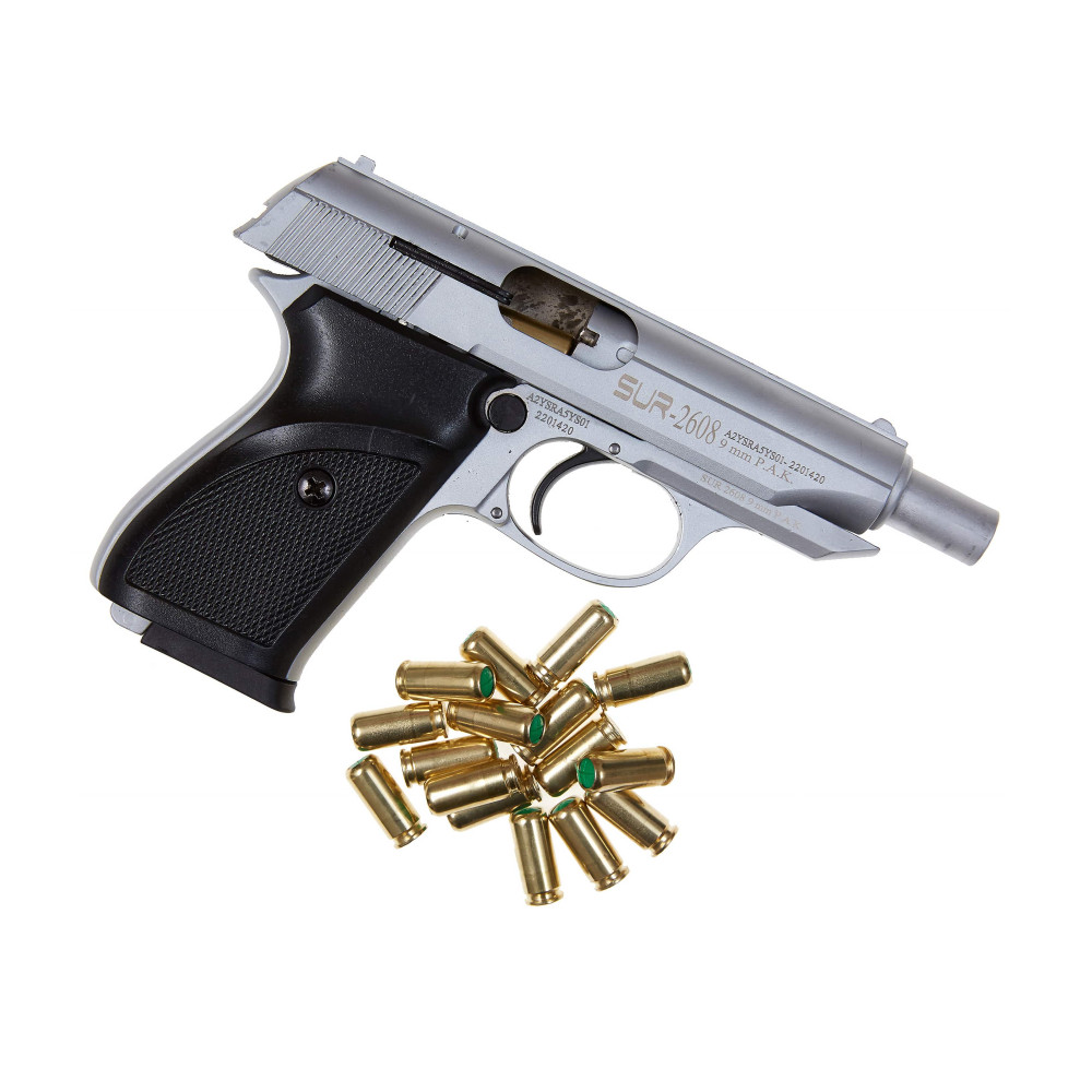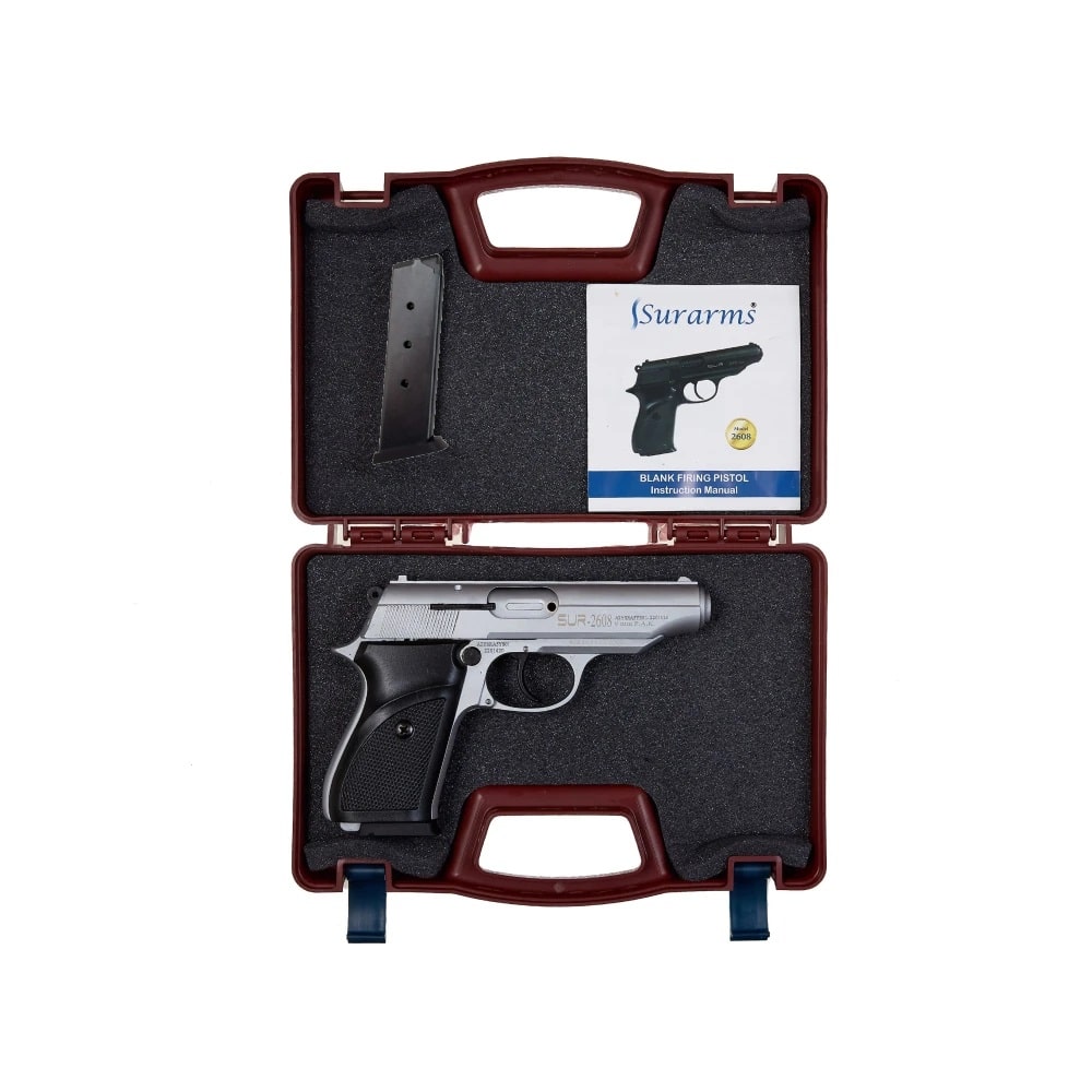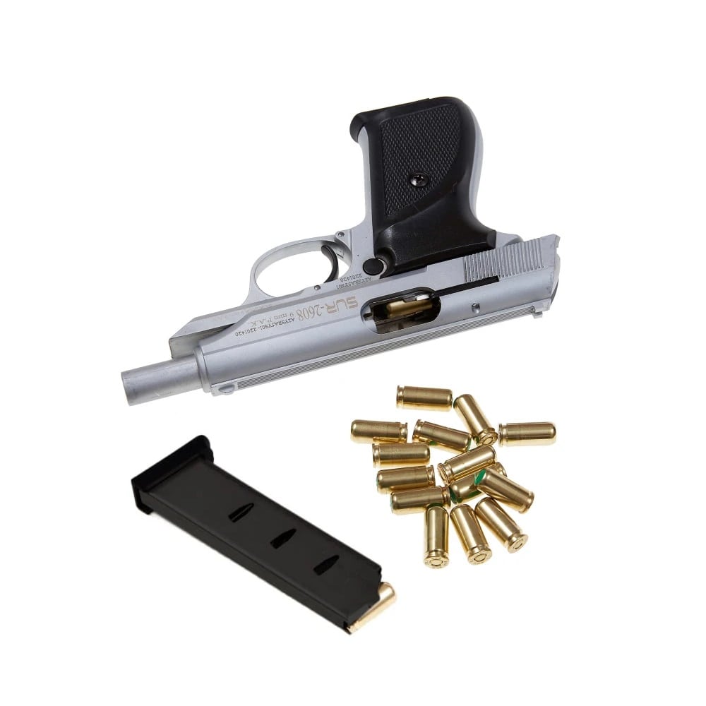 Стартовий пістолет SUR 2608 Chrome - дозволена турецька копія Walther PP/PPK, що випускався з 1929 року. Також є візуальною копією Пістолета Макарова ПМ. Стріляє холостими патронами калібру 9мм, вага – 690 г, габарити – 174х115х30 мм. Матеріали - сталь, спецсплав ЦАМ та жаростійкий пластик.