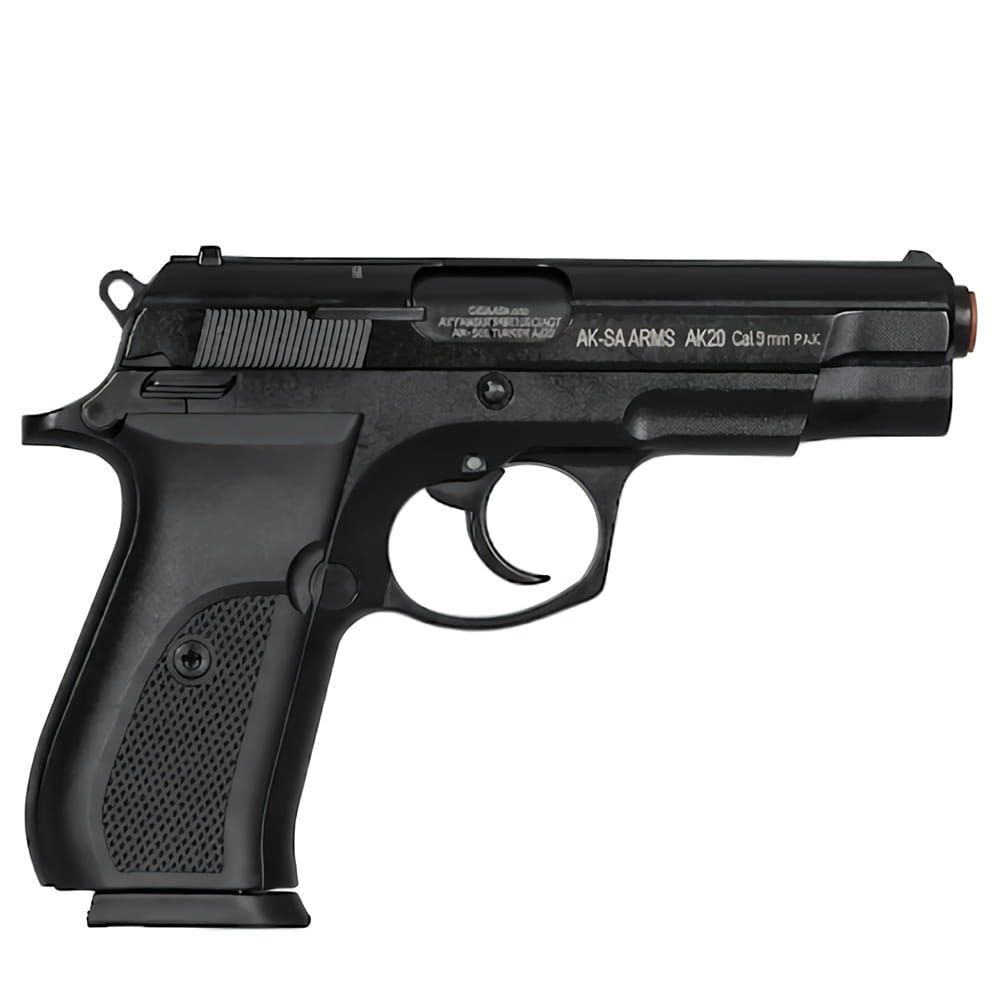 Aksa Arms AK20 - стартовий пістолет, він же шумовий, пугач, охолощений, СХП - це сигнально-шумова зброя з накладками на рукоятці з пластику, що стріляє холостими патронами калібру 9мм. Використовується для подачі звукових сигналів на спортивних змаганнях, для самооборони, відлякування тварин без травматичного ефекту, в театральних виставах і кіно. Виготовляється за макетом бойового ствола, копіюючи зовнішній вигляд, матеріали деталей, вагу і принцип роботи справжньої зброї, включаючи роботу автоматики, виліт стріляної гільзи, пристрій, неповне розбирання, потужність звуку при пострілі.