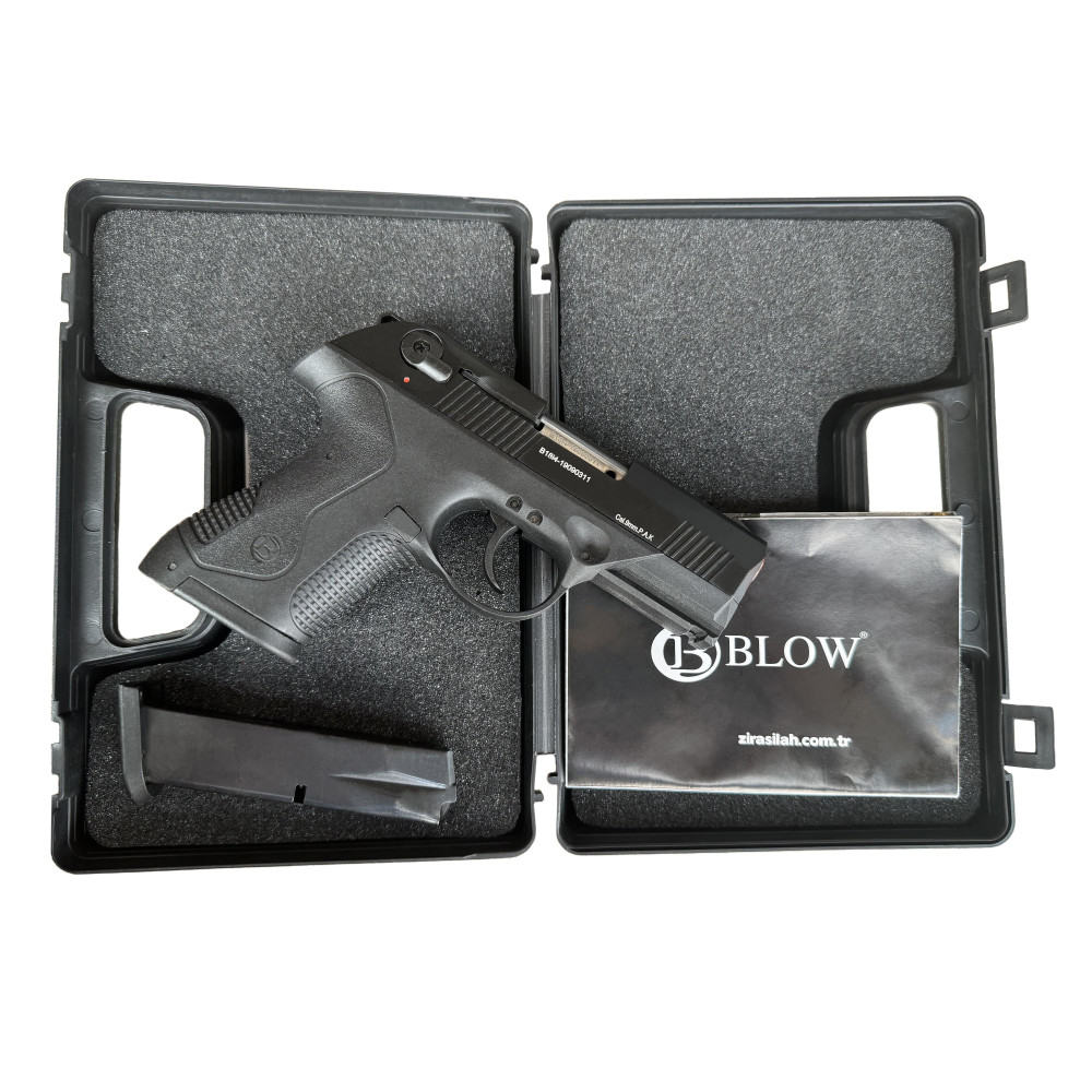 BLOW TR14 - стартовий пістолет, він же шумовий, пугач, охолощений, СХП - це сигнально-шумова зброя, що стріляє холостими патронами калібру 9мм. Використовується для подачі звукових сигналів на спортивних змаганнях, для самооборони, відлякування тварин, у театральних виставах і кіно. Виготовляється за макетом/кресленням бойового ствола Беретта Рх4 Сторм, копіюючи зовнішній вигляд, матеріали, вагу і принцип роботи с блоубеком справжньої зброї, включно з вильотом гільзи.