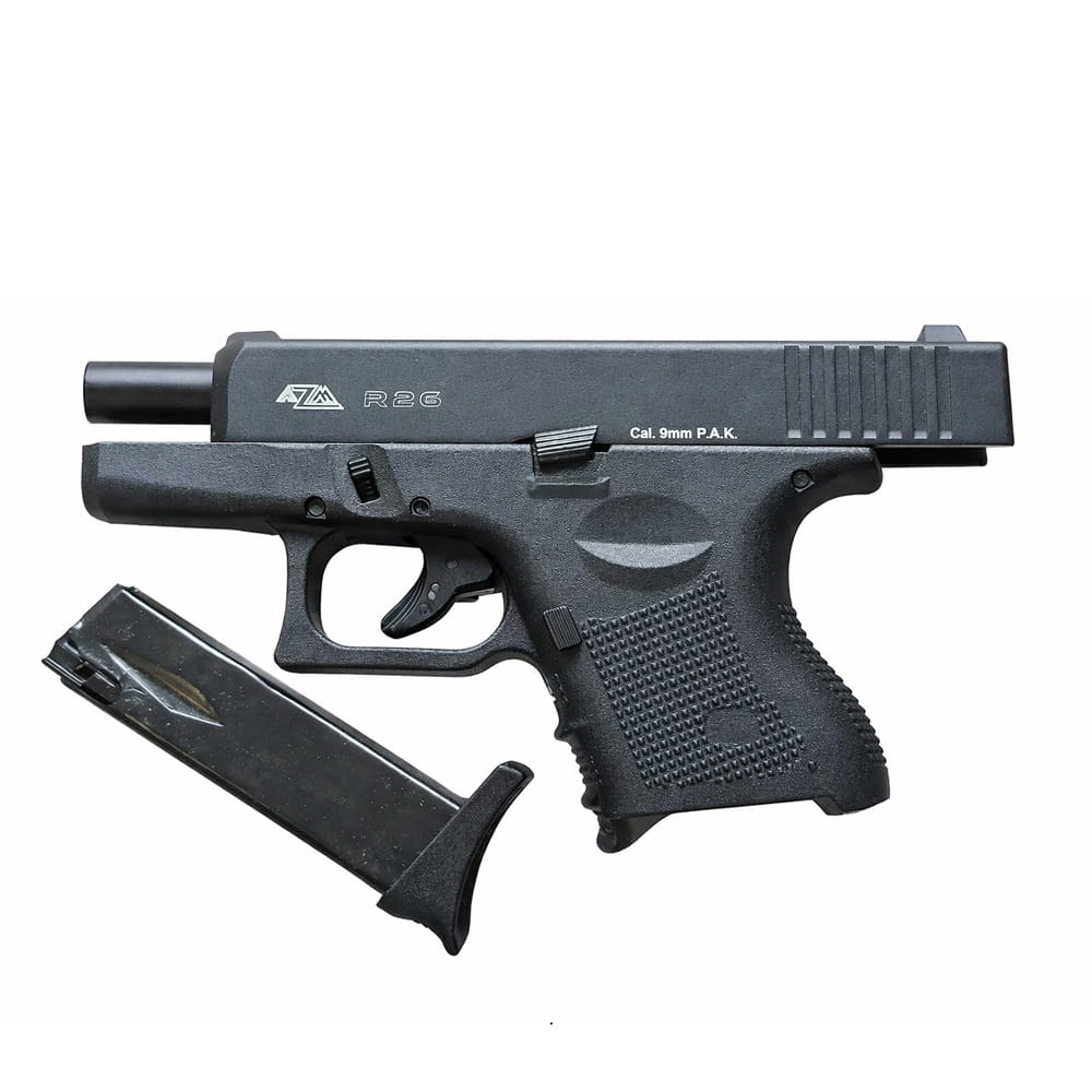 Прототип стартового пістолета RETAY AZM R26 - вогнепальний Glock 26 Gen 4, розроблений в 1995 році. Продовження історії австрійського Глок 17 з укороченим затвором і звуженою рамкою. При своїх компактних розмірах модифікація володіє високою дульною енергією і зупиняючою дією набоїв 9х19 Парабеллум. Прекрасний ствол для самооборони і прихованого носіння стоїть на озброєнні поліції і армії в 20 країнах світу. В тому числі Україна закупиила невелику партію Глок 26 у 2008 році для потреб правоохоронців.