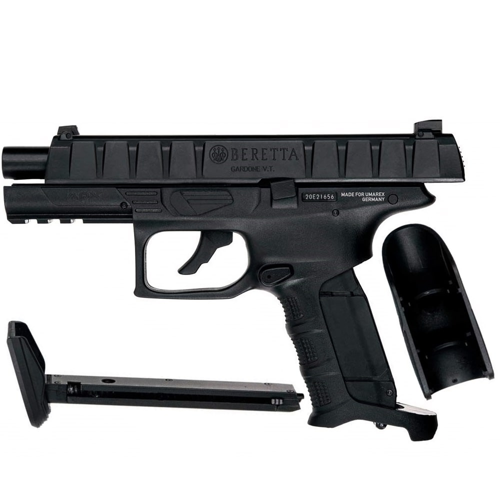 Ліцензійний пневматичний Beretta APX - надергономічний пістолет, із серйозною початковою швидкістю пострілу, незважаючи на блоубек, комфортною вагою, делікатним припасуванням деталей, гідним числом пострілів з одного балона. Для любителів навісити на пістолет ліхтарі та лазерні цілевказівники виробник передбачив підствольну планку Пікатінні.