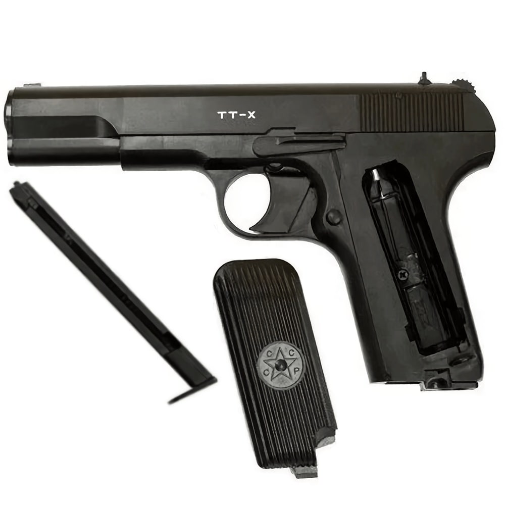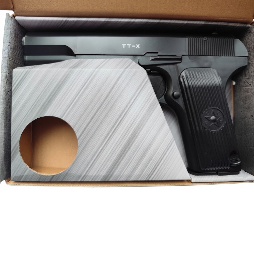 Пластиковий Borner TT X Токарєва кал 4,5 мм - вдала модель для пневмоводів-початківців - легка, з максимально простим і зрозумілим влаштуванням, і найголовніше бюджетна. Відсутність рухомих частин полегшує обслуговування Borner TTX, дозволяє робити максимальну кількість пострілів з одного балона, а мінімальна вага підвищує точність пострілу, забезпечує високу дульну енергію, купчастість і дальність стрільби. У модельному ряду Борнер є 2 аналоги Борнер ТТХ: повноважний Borner TT Blowback з імітацією віддачі при стрільбі та Borner TT-M металевий з затвором, що ковзає, але без блоубека.