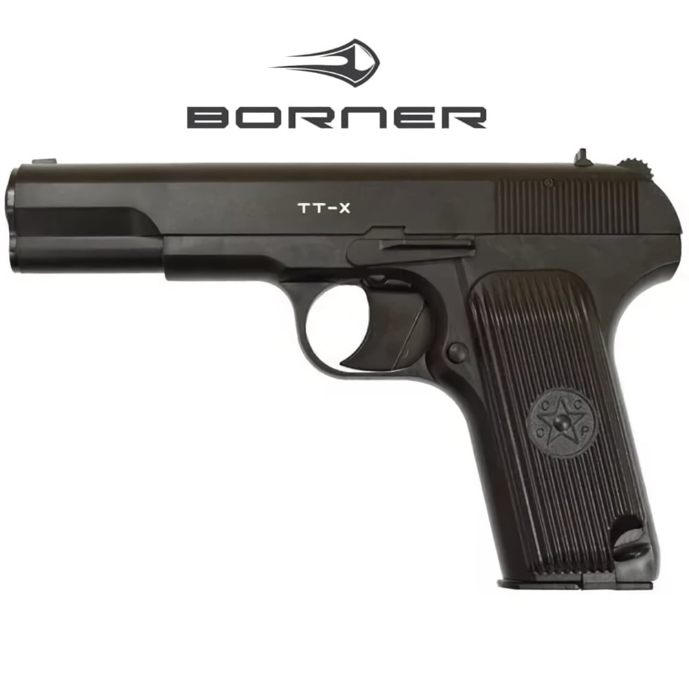 Borner TT-X зовні копіює легендарний пістолет Тульського Токарєва, він же ТТ, другий за популярністю після ПМ зброї радянських командирів часів Другої Світової війни, псів НКВС та бандитів з 90-х, які поважали його за здатність справлятися з брониками 1-го класу.