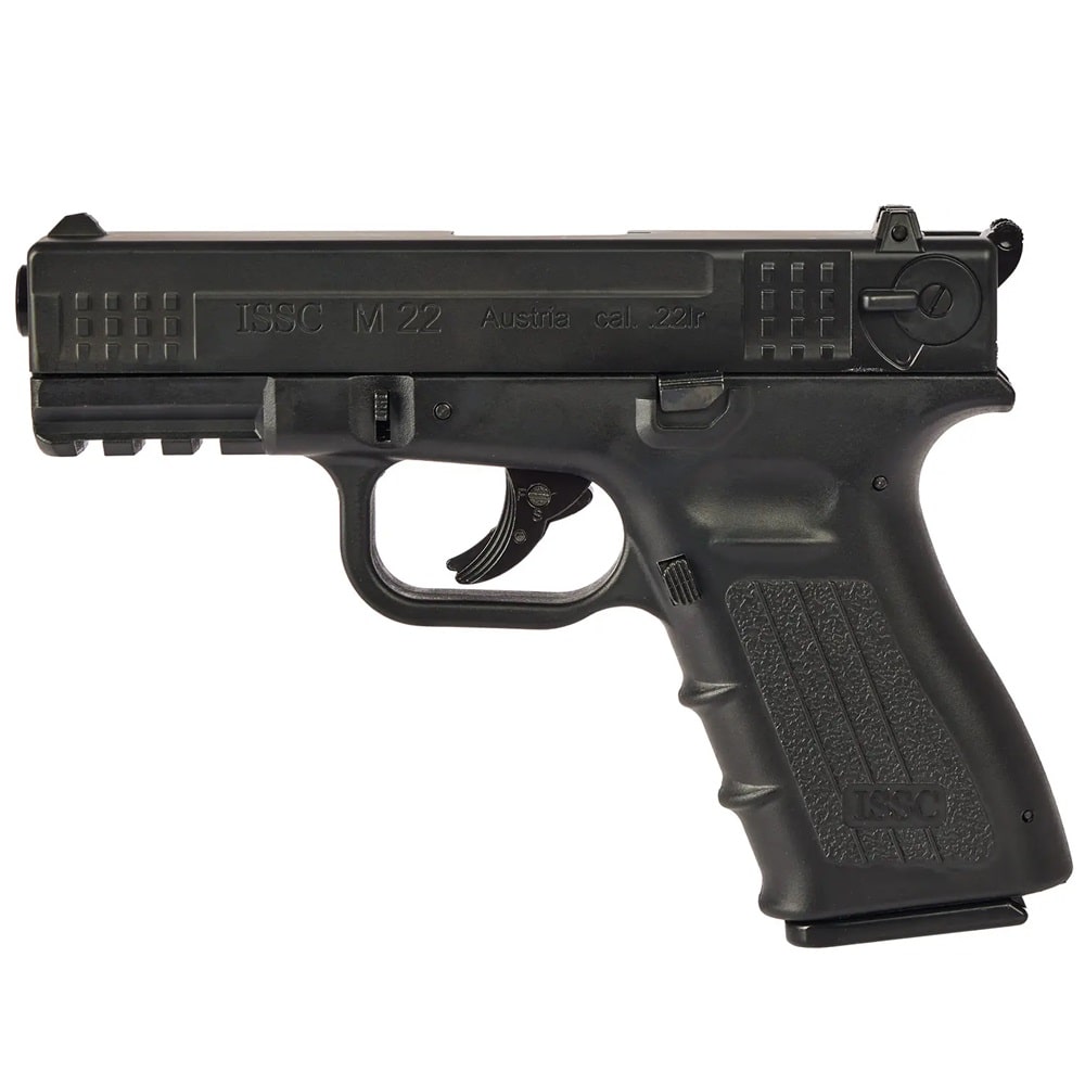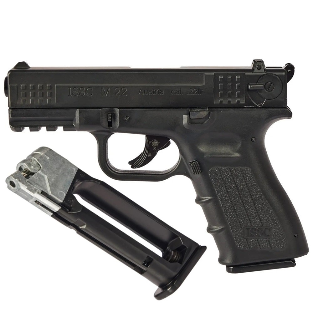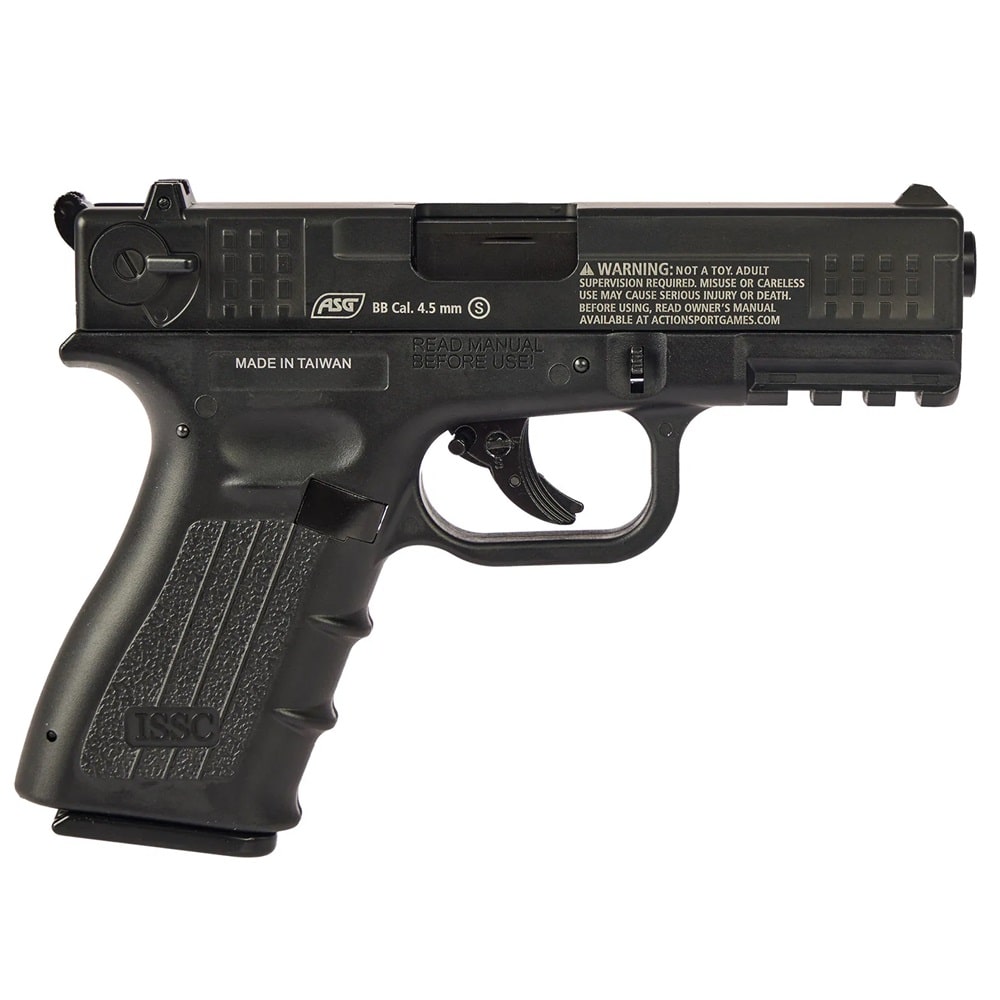 ASG ISSC M22 4,5 мм копіює австрійський вогнепальний М22 калібра 22LR - альтернатива Glock 19/Глок 19 (компактній версії Глок 17). Вдале поєднання малої ваги і розмірів, ергономіки, простої, але надійної конструкції, забійної сили. Універсальна зброя швидко стала популярною серед спецслужб, поліції, цивільних для прихованого носіння і самооборони.