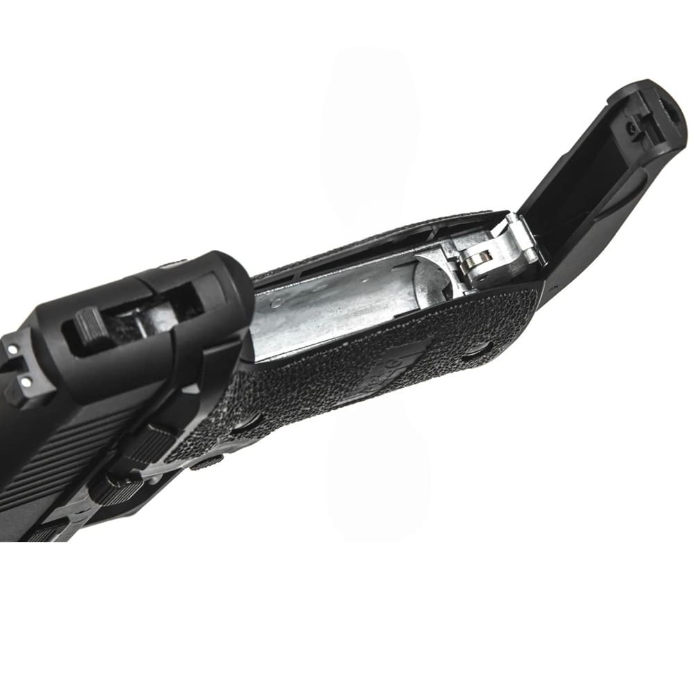 Пневматичний Sig Sauer P226 Blowback - газобалонний пістолет кульковий калібром 4.5 мм від преміального німецького бренду Sig Sauer. Пневмат Зіг Зауер Р226 - гладкоствольний суцільнометалевий повновісний пістолет з рухомим затвором, як у оригінала, нарізним стволом з різьбленням для встановлення імітатора глушника, з опцією Blowback, двостороннім магазином на 16 набоїв, що вставляється в тильну частину руків'я, функціональним запобіжником, що виконує функцію декокера, та планкою Пікатінні. Стріляє сталевими/обмідненими кульками BB і свинцевими кулями Діаболо з початковою швидкістю 115 м/с, джерело енергії - газовий балон CO2 12 г. Ударно-спусковий механізм подвійної дії. Купити пневматику потужністю до 3 Джоулів в Україні можна без дозволу. Комплект поставки пневмата Sig Sauer P226 Blowback: