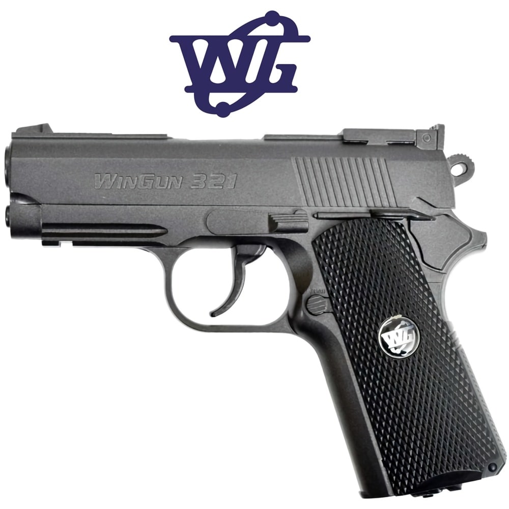 Wingun 321 Colt Defender (WC4-321) – газобалонний пневматичний пістолет калібром 4,5 мм від бренду Win Gun (Тайвань). Пневмат Він Ган 321 - гладкоствольний повноважний пістолет з металевим затвором, як у бойового прототипу, без опції Blowback, обоймою на 18 набоїв. Підтискний гвинт із вбудованою антабкою захований у руків'ї; накладка із протиударного полімерного пластику. Стріляє сталевими/обмідненими кульками BB зі швидкістю до 120 м/с , джерело енергії – газовий балончик CO2 12 г. Прицільні пристрої - нерегульовані цілік, мушка. Ударно-спусковий механізм лише подвійної дії. Оснащений підствольною планкою Picatinni/Weaver для встановлення ліхтаря, лазера. Купити пневматику потужністю до 3 Джоулів можна без дозволу. Комплект постачання пневмата Wingun 321: