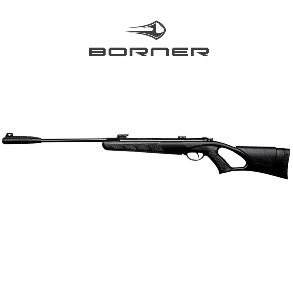 Пневматична гвинтівка Borner N-05 Full Power — пружинно-поршнева гвинтівка з розкладним стволом калібру 4,5 мм/.177 класу Магнум від преміального американського бренду. Складана гвинтівка Borner N-05 зі сталевою посиленою пружиною, нарізним стволом, автоматичним запобіжником, пластиковим ложем і прикладом з гумовим тильником. Пневматична гвинтівка Borner N-05 Break Barrel Air Rifle стріляє свинцевими кулями Pellet із заявленою швидкістю до 320 м/с залежно від ваги кульки, середня потужність/дулова енергія близько 25 джоулів. Зводиться переломом ствола. Штатні прицільні пристосування — регульований цілик і мушка з фіброоптичною ниткою. Для збільшення прицільної дальності стрільби комплектується оптичним прицілом 4х32. Купити пневматичну гвинтівку 4,5 мм в Україні можна без дозволу. Огляд комплектації пневматичної гвинтівки Borner N-05:
